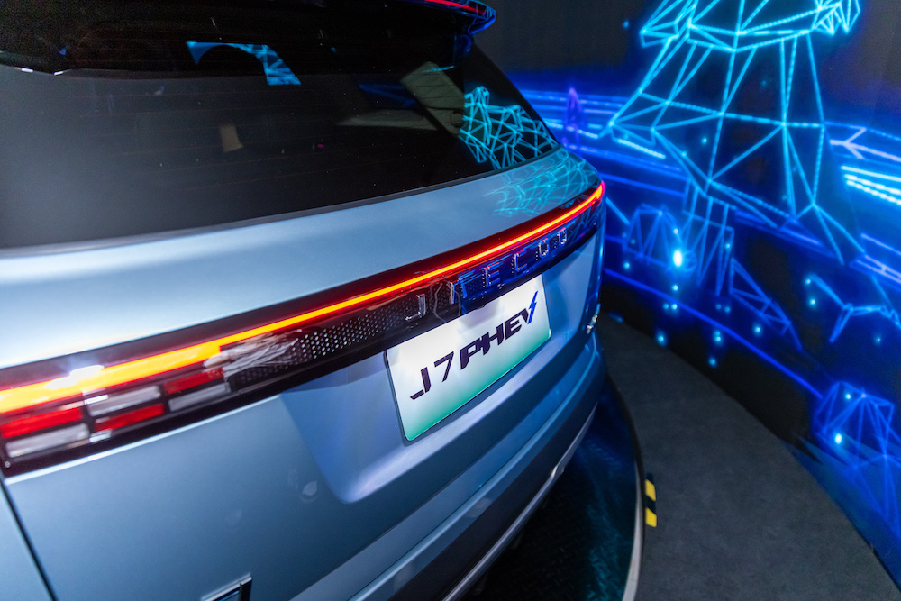 The highly anticipated JAECOO J7 PHEV, which will be officially launched in Malaysia by the end of the year, shares the same sleek design as its petrol-powered counterpart. However, the PHEV model offers unique features, including a hybrid engine, exceptional range, DC charging capability, and the ability to power external electronic devices like a kettle, projector, or hairdryer, making it ideal for outdoor enthusiasts.