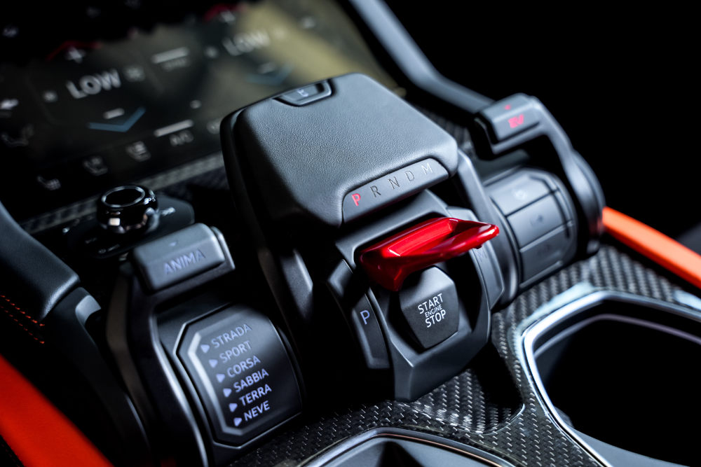 A larger screen – now 12.3 inches – installed in the center of the dashboard features a new version of the Human Machine Interface (HMI) that is even more intuitive to use with updated graphics, consistent with that of the Revuelto. The Lamborghini Centro Stile designers also directed their design focus on the air vents; the anodized aluminum trim elements with the unmistakable Y shape; and the new panel, seat, and dashboard coverings. The mechanical pushbutton panel gives a more tactile feel.