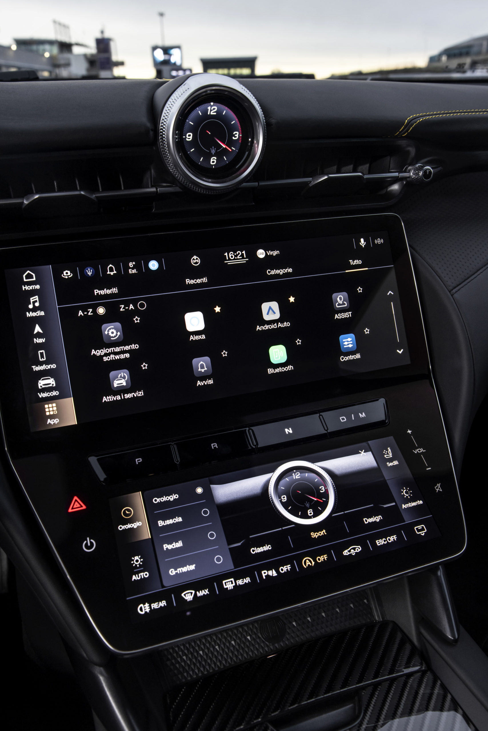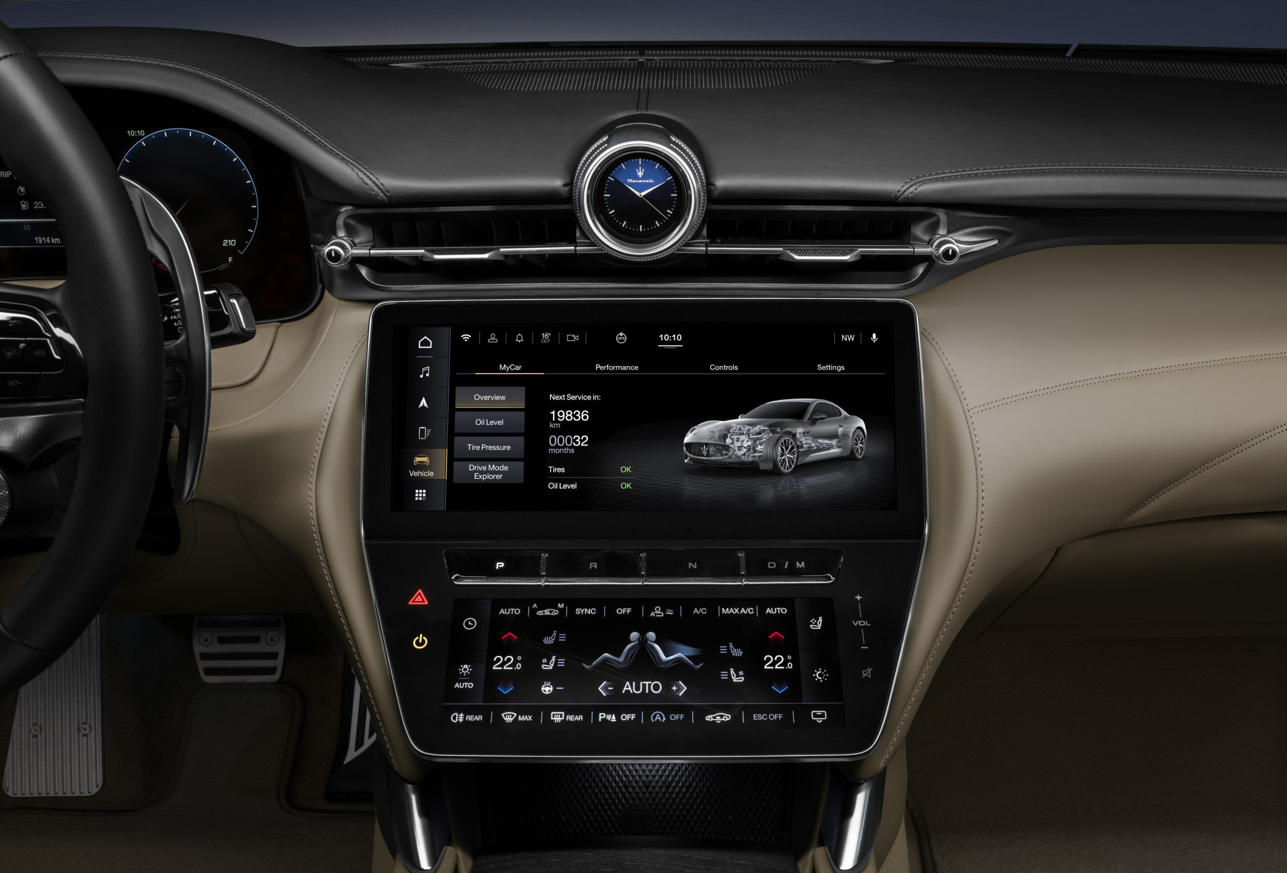 This approach is paired with new Atlantis High electrical/electronic architecture, based on canFD messages sent at speeds of up to 2ms. The system also comes with advanced level 5 cyber-security and flash-over-the-air features. The fulcrum is the Vehicle Domain Control Module (VDCM) master controller, a 100% Maserati project consisting of the software that provides 360-degree control of all the most important car systems for the best driving experience in all conditions.