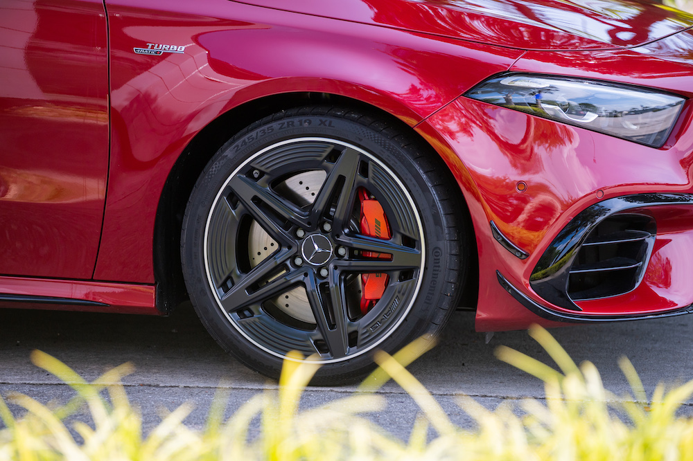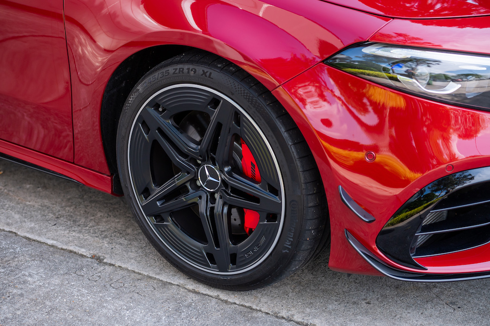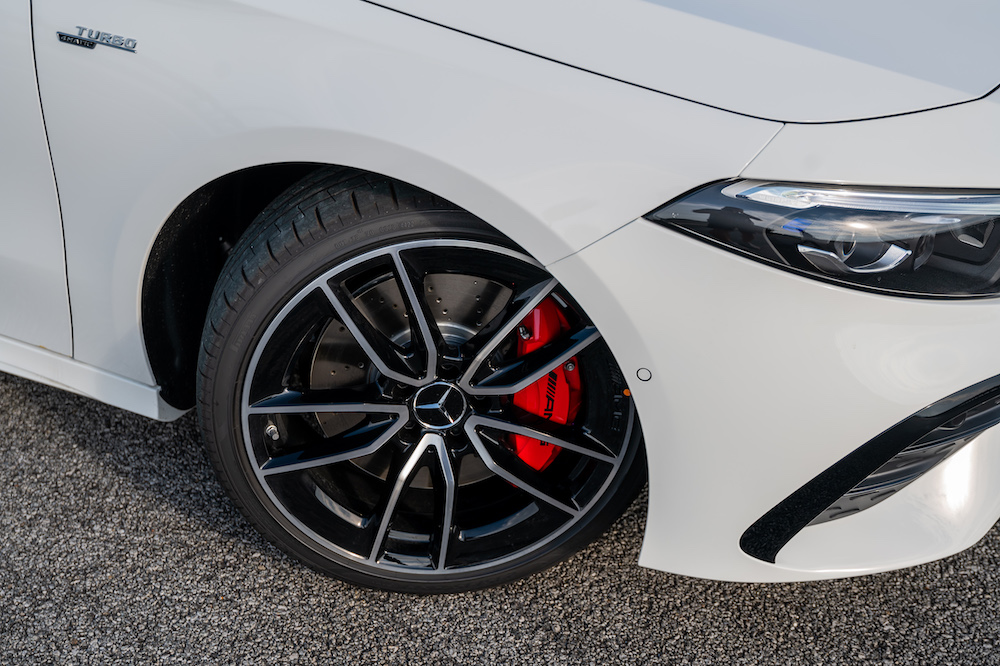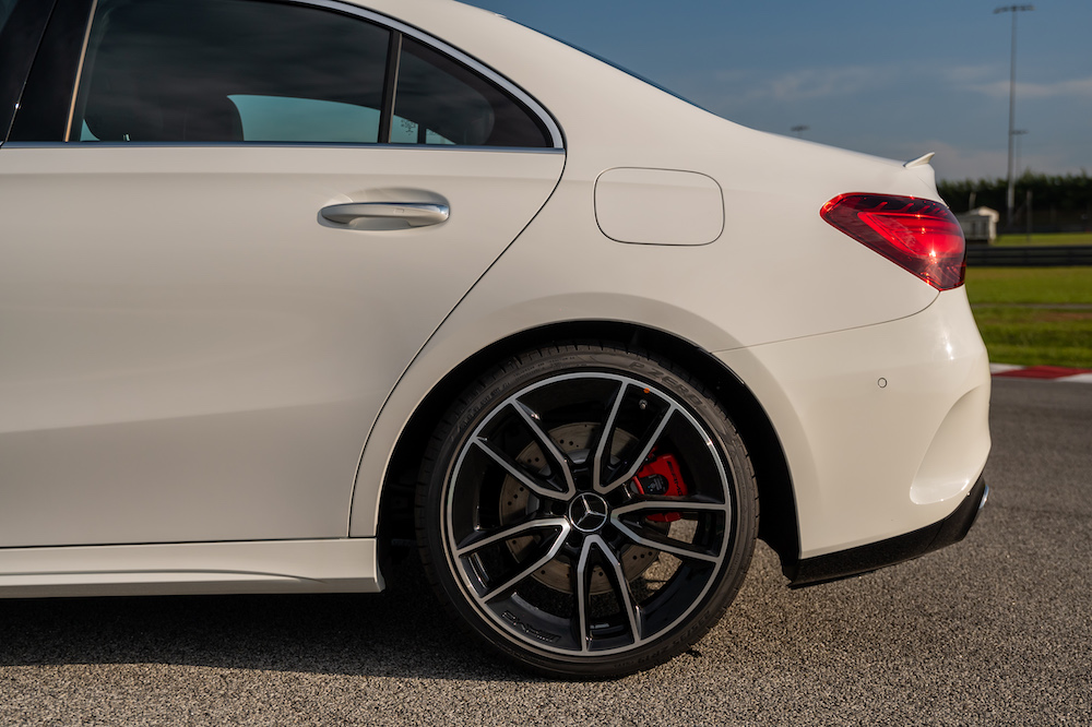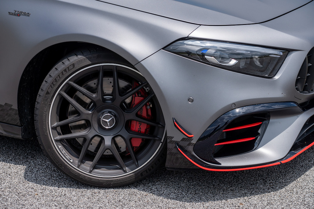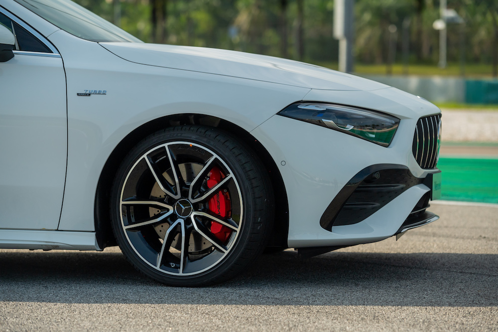 The AMG A45S 4MATIC+ is equipped with 19-inch AMG 5-twin-spoke light-alloy wheels aerodynamically optimized in matt black high-sheen rim flange and the AMG A 35 4MATIC comes with 19-inch AMG 5-twin-spoke light-alloy wheels. Both models come with red-painted brake callipers and Adaptive Highbeam Assist Plus.