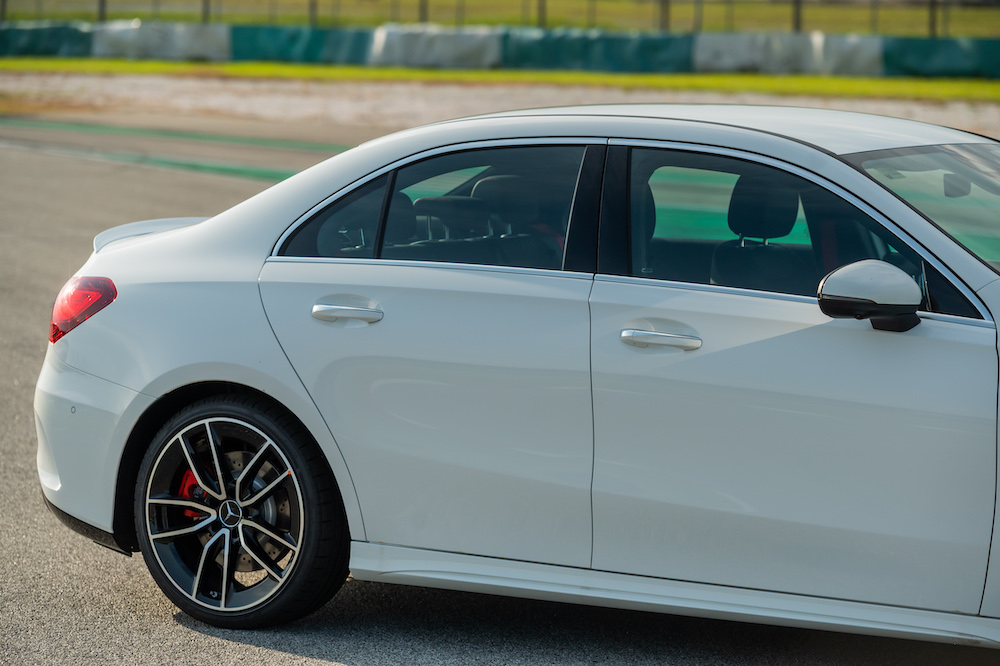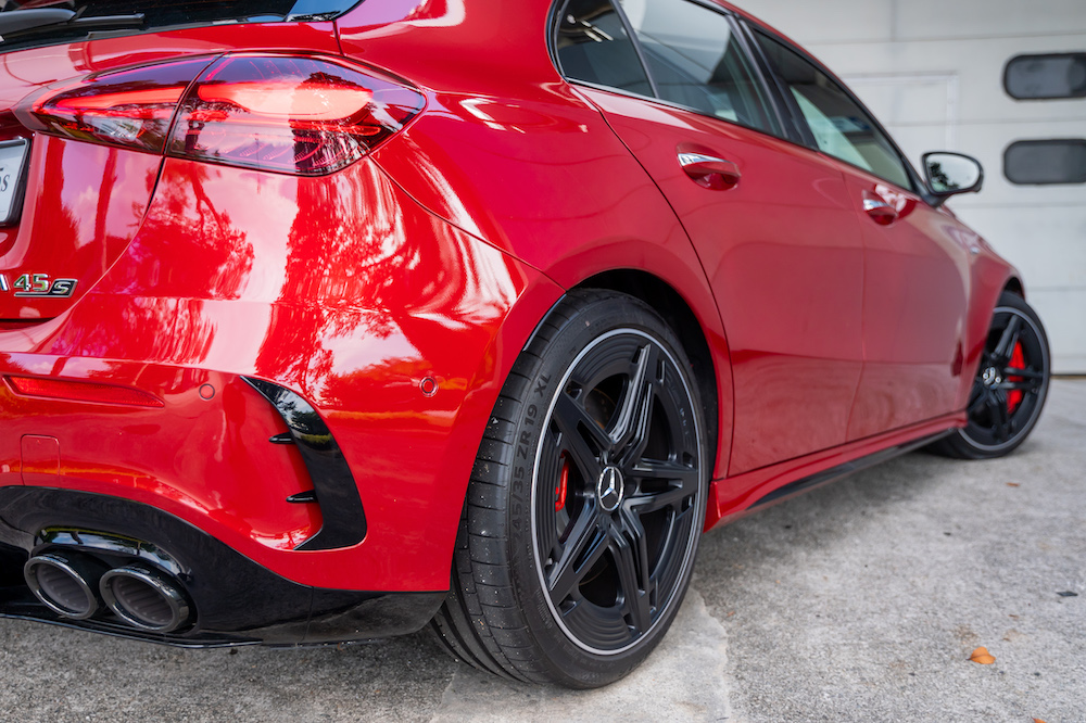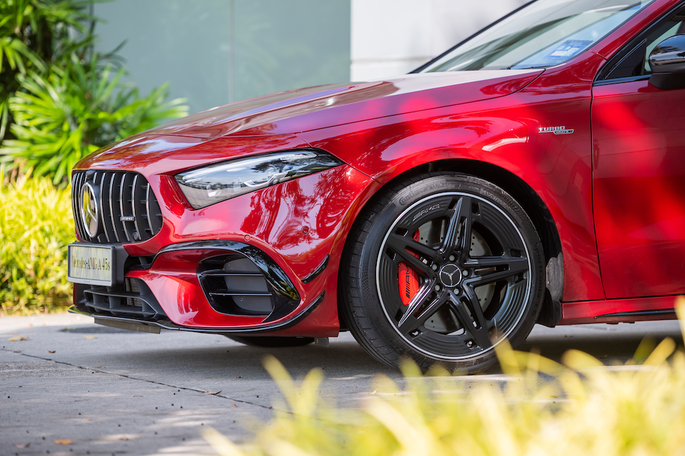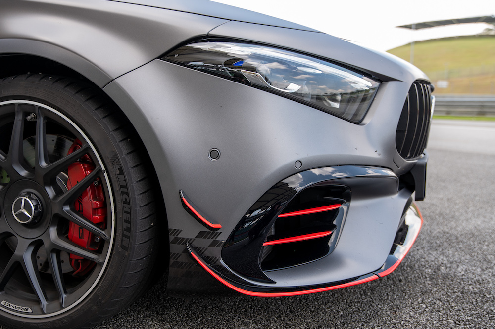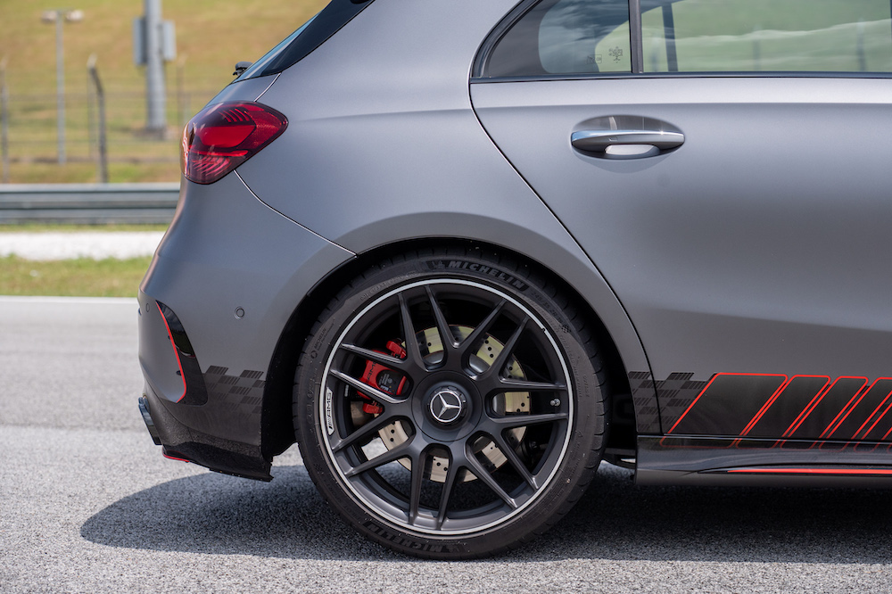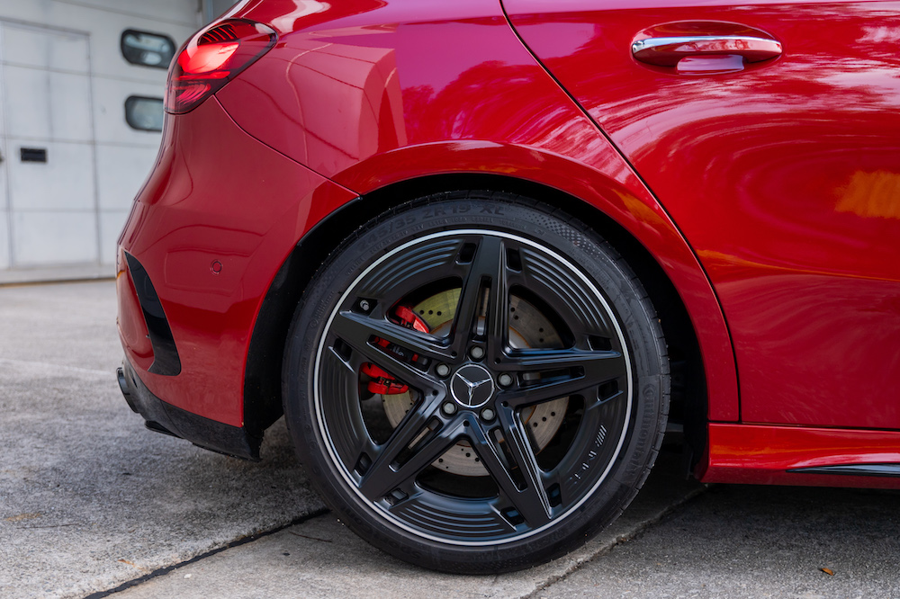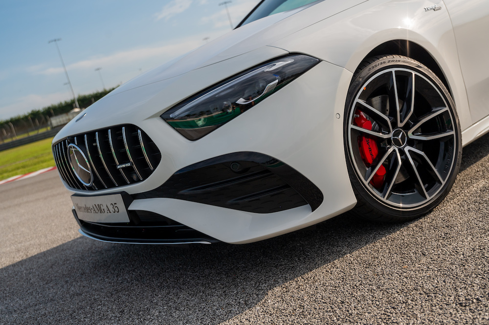 The AMG A45S 4MATIC+ is equipped with 19-inch AMG 5-twin-spoke light-alloy wheels aerodynamically optimized in matt black high-sheen rim flange and the AMG A 35 4MATIC comes with 19-inch AMG 5-twin-spoke light-alloy wheels. Both models come with red-painted brake callipers and Adaptive Highbeam Assist Plus.