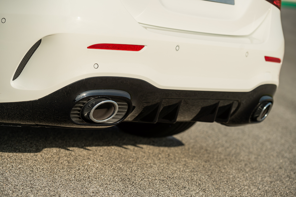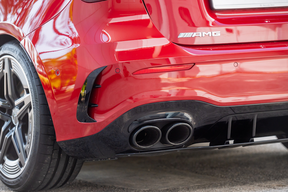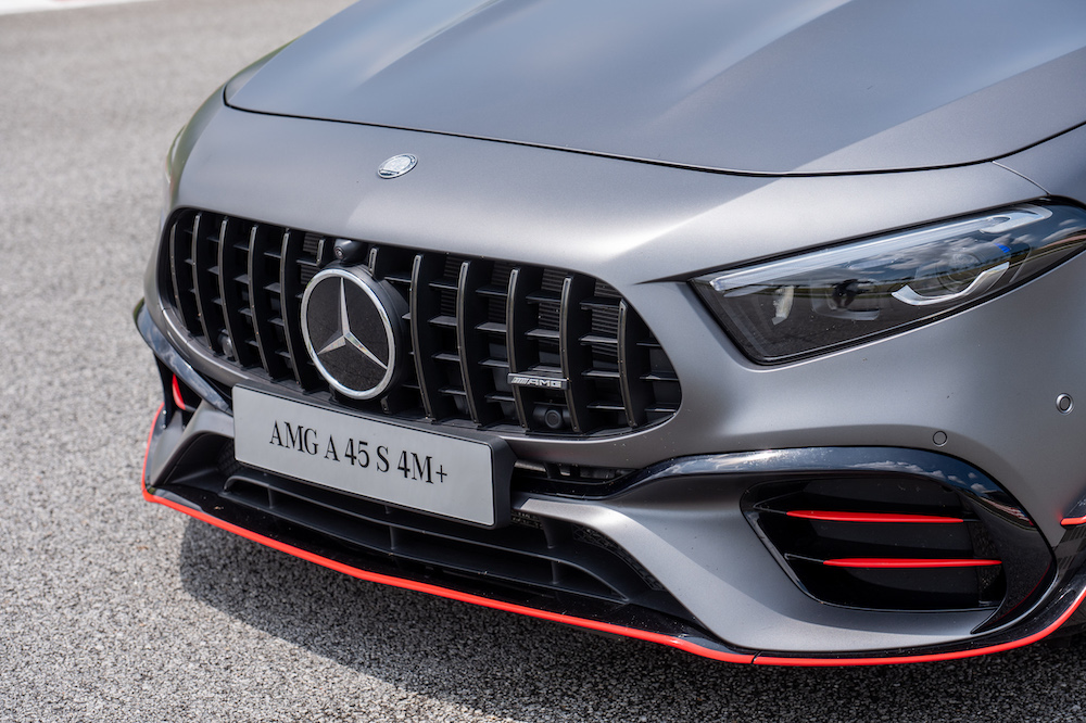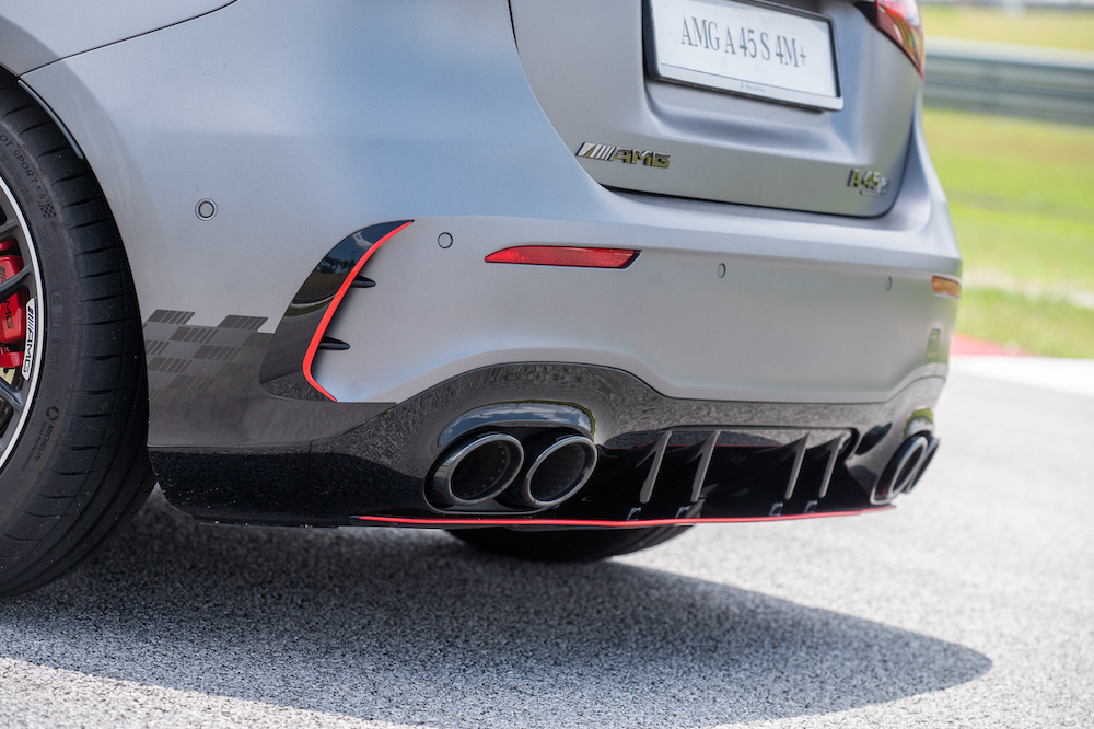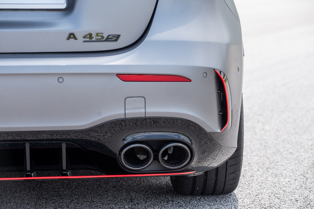 Although the Mercedes-AMG cars have no problems being outstanding, the new models keep their look fresh with revised front headlamps, the AMG-specific radiator grille and the new, round badge with the AMG emblem instead of the Mercedes star with a laurel wreath. The rear spoiler lip, revised headlamps and the round exhaust pipes (twin-flow on the Mercedes‑AMG A45S 4MATIC+) rounds up the new body bits.