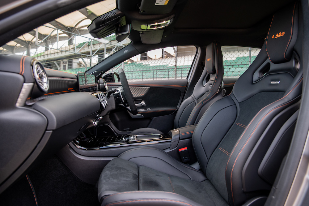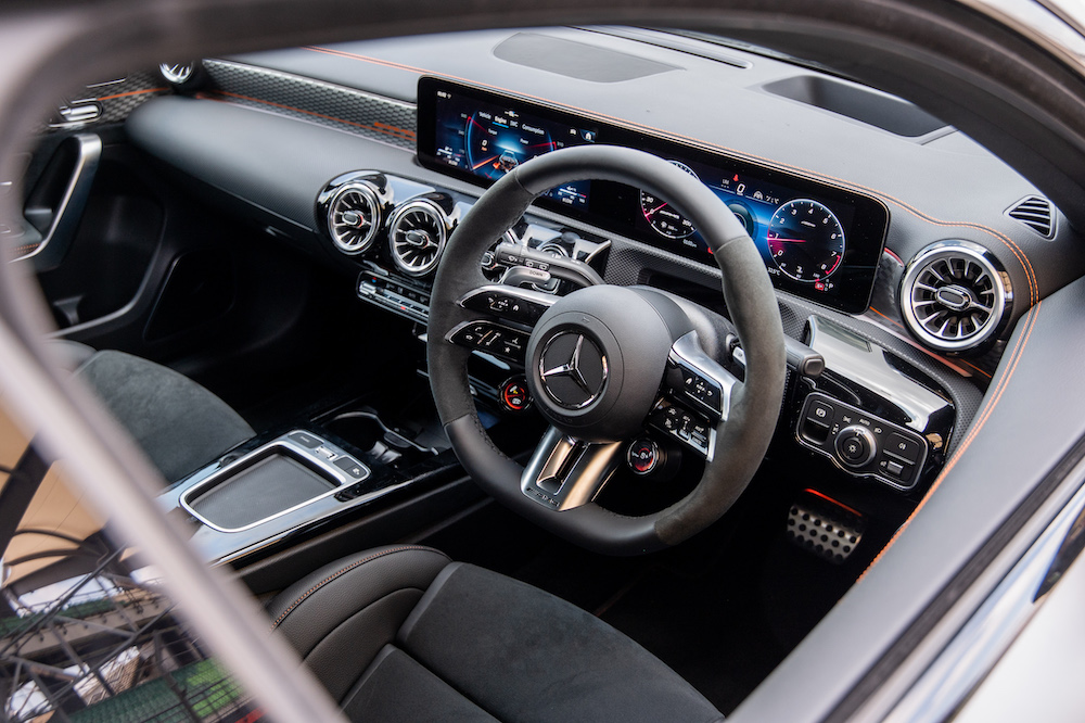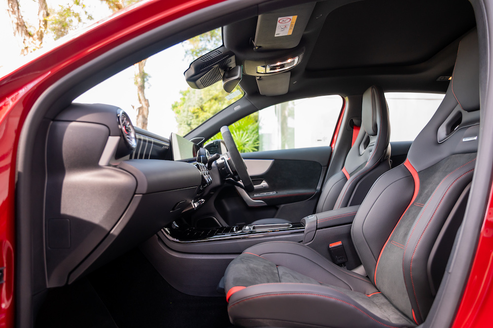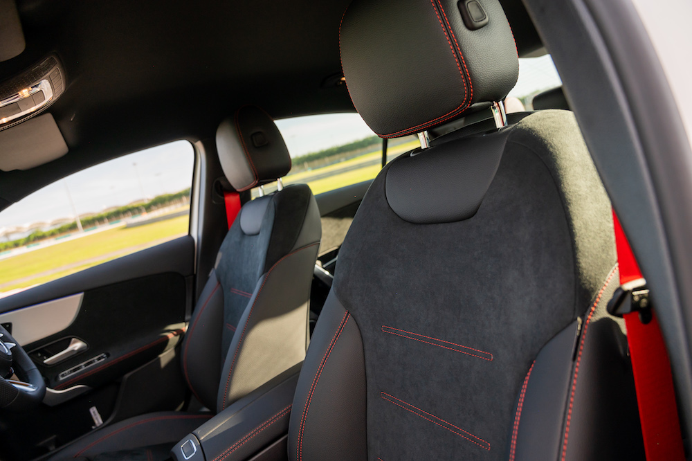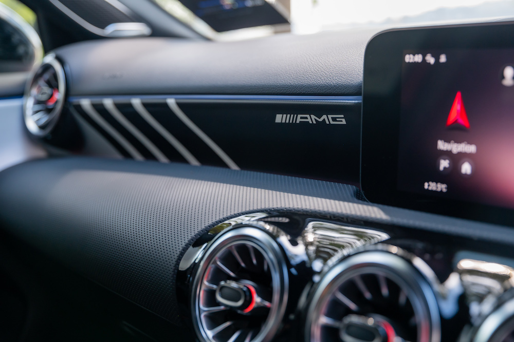 The AMG A 45 S 4MATIC+’s new version of the steering wheel with new touch-control panels, providing enhanced functionality and convenience is wrapped in Nappa leather / MICROCUT microfiber and the AMG A 35 4MATIC’s is in nappa leather. In addition, the A 45 S 4MATIC+ comes with the Multicontour Seat package paired with AMG Performance Seat Package Advanced and the AMG A 35 4MATIC comes with sport seats.
