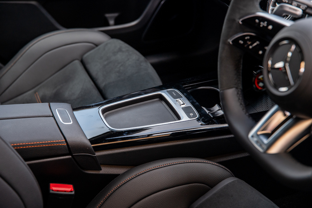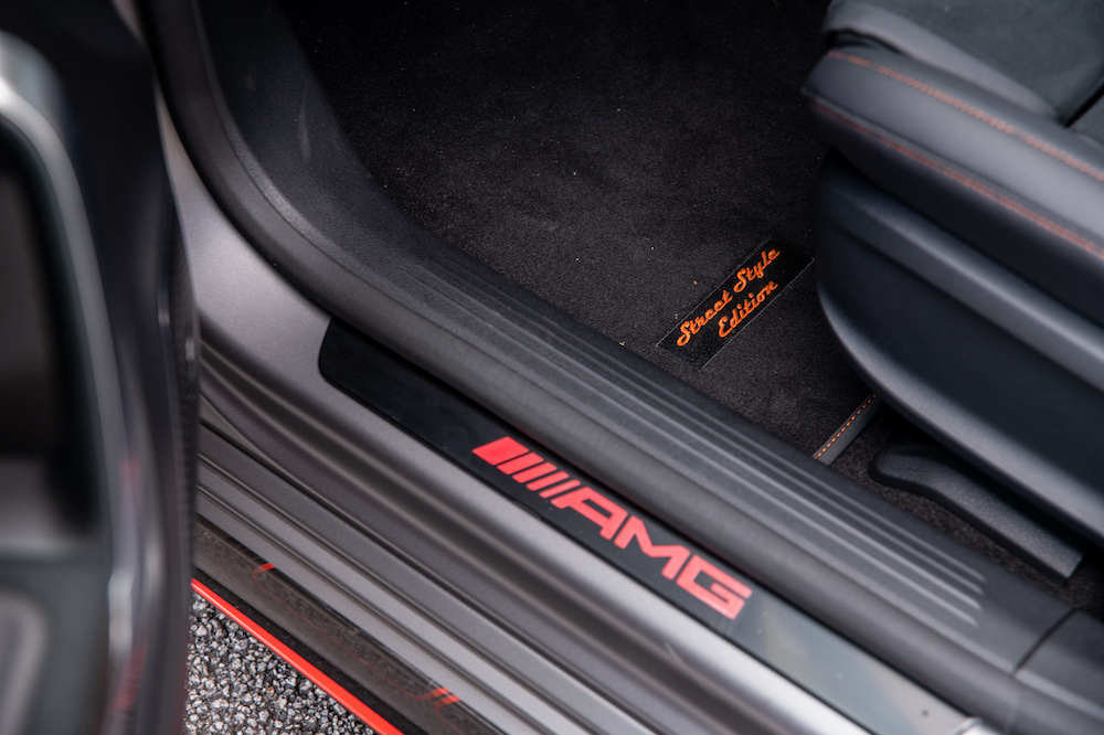 In keeping with all this, the interior of the AMG Street Style Edition is also unmistakable: the ARTICO man-made leather upholstery / MICROCUT microfibre AMG black with contrasting orange topstitching paired with AMG trim in dark/orange Street Style Edition aluminium elevates the look in the cabin. The orange label on the headrest quickly makes it clear which edition from Mercedes-AMG we are talking about here. In addition to that, the AMG Street Style Edition is equipped with Floor mats for special models.