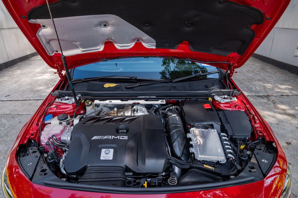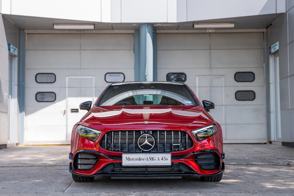 The AMG A 45 S 4MATIC+ has a 4-cylinder Turbocharged Petrol Engine enabling the vehicle to accelerate from 0-100 km/h in just 3.9 seconds.