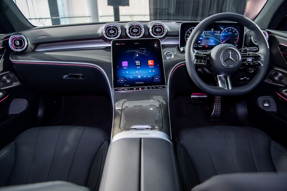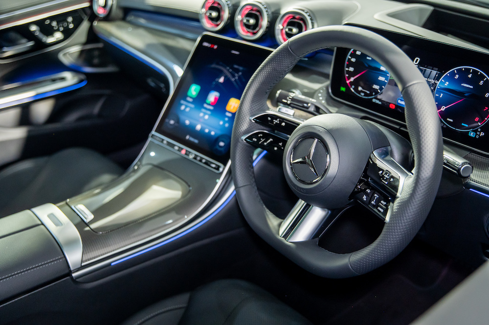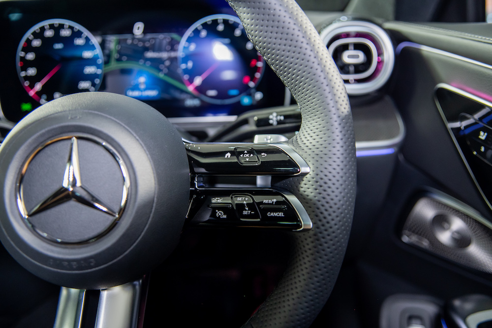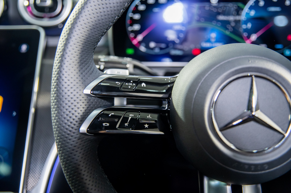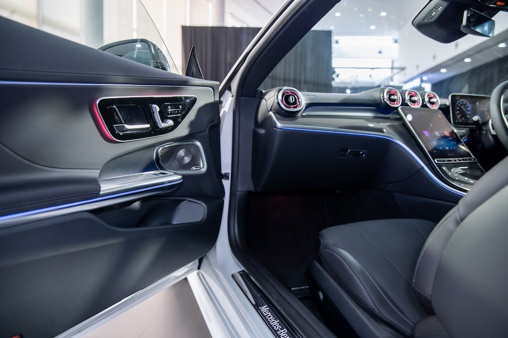 Under the long hood is a 2.0-litre turbocharged to produce 258hp and 400Nm of torque. The engine is partnered with an electric motor that generates 17kW and 205Nm to assist acceleration. Mated to a 9G-TRONIC 9-speed automatic gearbox, the CLE 300 accomplishes 0-100kph in 6.2 seconds and up to a top speed of 250kph. Self-steering rear wheels with up to 2.5° steering angle adjustment provides a more agile and stable ride.
