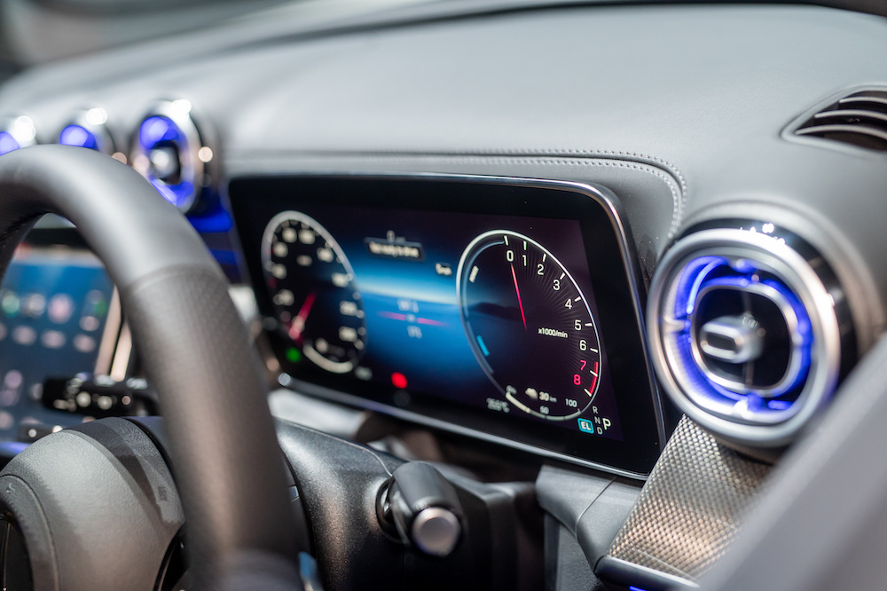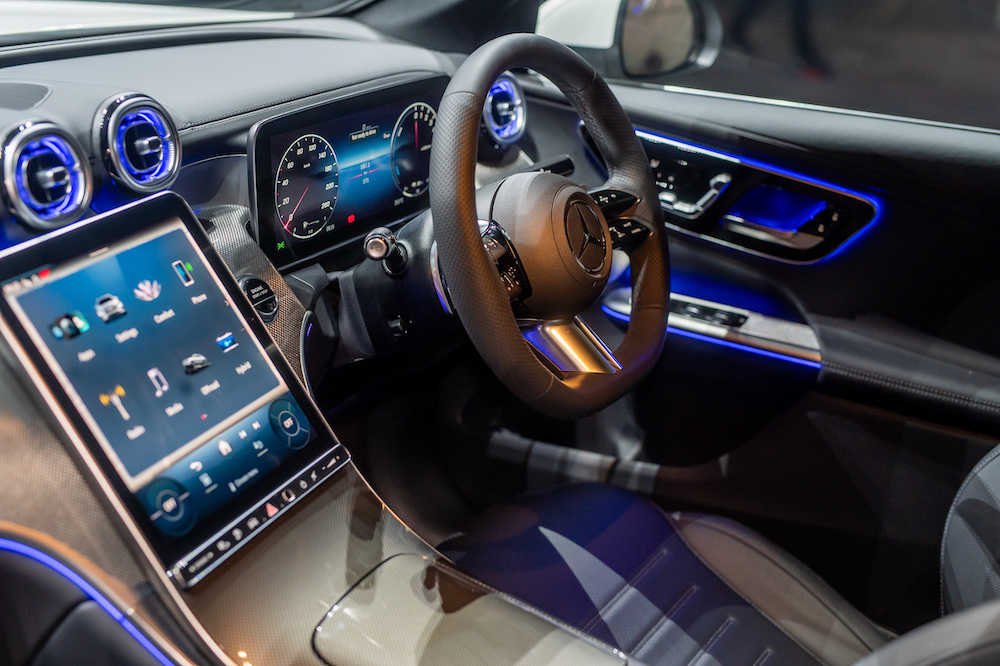Mercedes-Benz’s advanced MBUX infotainment system takes center stage, offering MBUX Navigation Premium and Augmented Reality for seamless navigation. The Burmester® 3D surround sound system with 15 high-performance speakers elevates the in-car audio experience to new heights.
