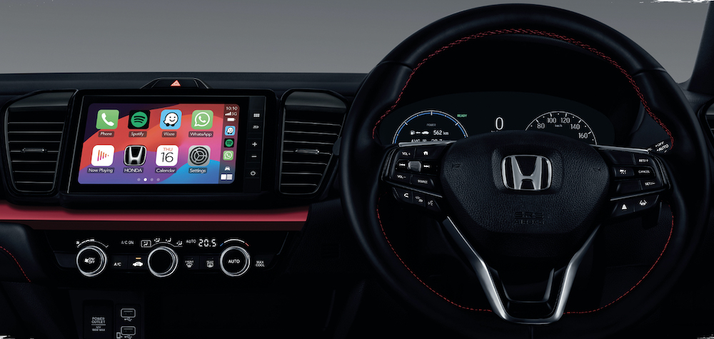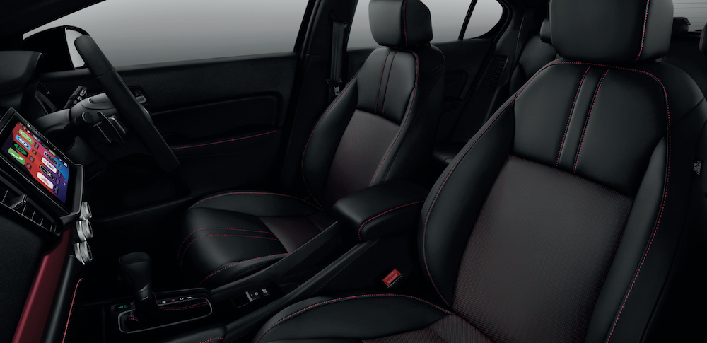 The interior of the new Honda City Hatchback has received a stylish upgrade. The RS variants now feature a striking red-painted dashboard panel and sporty Combi Leather seats with eye-catching red stitching.