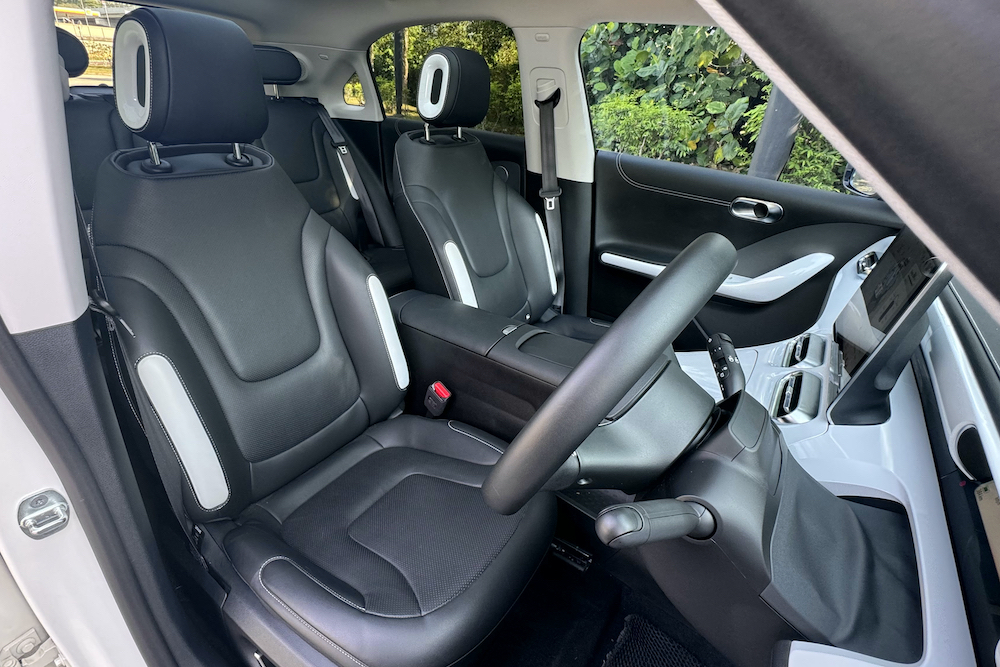 Energy comes from a 66kW Nickel Manganese Cobalt (NMC) battery that yields a 440km WLTP range. The same can be found in the #1 Brabus but the performance-oriented has 40km less range. The difference is not just the engine tuning but the aero-wheels on the Premium also makes it more efficient on the run. Going from 20 to 80 per cent on a DC charger can be as slow as two hours or 30 minutes, depending on how many kilowatts the charger delivers.