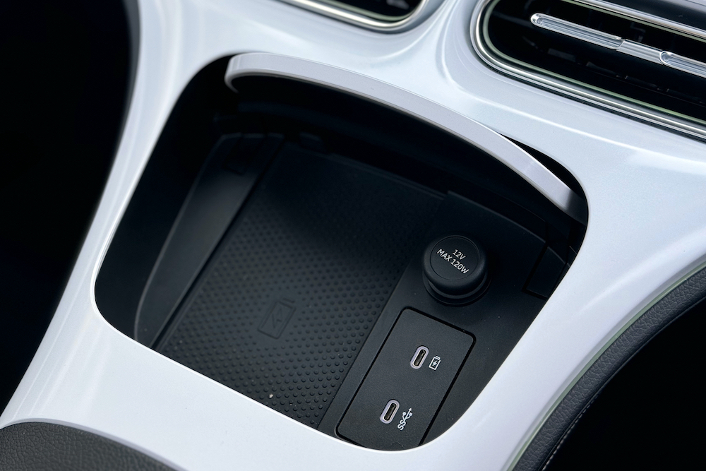 Minimalism is what the interior designers were going for and succeeded. The designers managed to fit three storage areas in the middle console – a storage box in between the passengers, cupholders in front and a lidded box with wireless charging and power points.