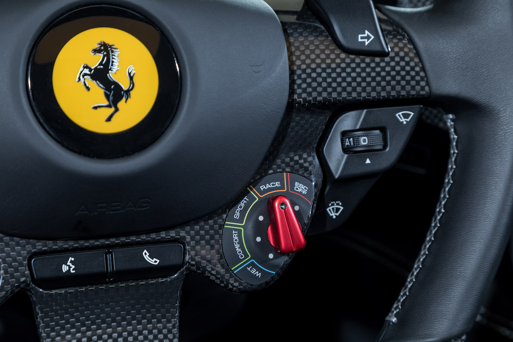 The aim of the five-position Manettino, a first on a Prancing Horse GT spider, is to make the Ferrari Portofino M’s handling and grip even more accessible by extending the setting ranges still further with the introduction of the Race position. Supported by the introduction of the Ferrari Dynamic Enhancer, that position focuses on maximising driving pleasure.