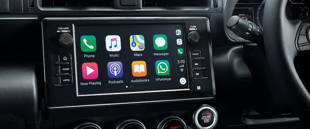 Apple CarPlay and Android Auto connectivity are part of the multimedia infotainment system which has an 8-inch display. On the driver’s side is a configurable 7-inch TFT colour LCD display which provides all the information about the car’s operation. A Track Mode, designed with help from TOYOTA GAZOO Racing’s professional drivers, provides real-time readouts of important data for circuit driving.