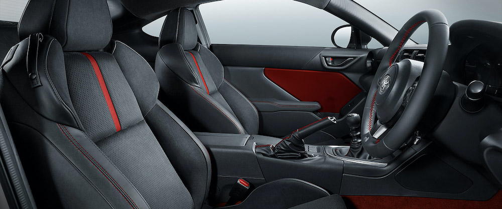 Inside the GR86 cabin, the designers have created a cockpit with a simple and ergonomic layout focused on pure driving. However, comfort has not been forgotten either, with premium leather and suede seats being standard with 6-way manual adjustment for the driver.