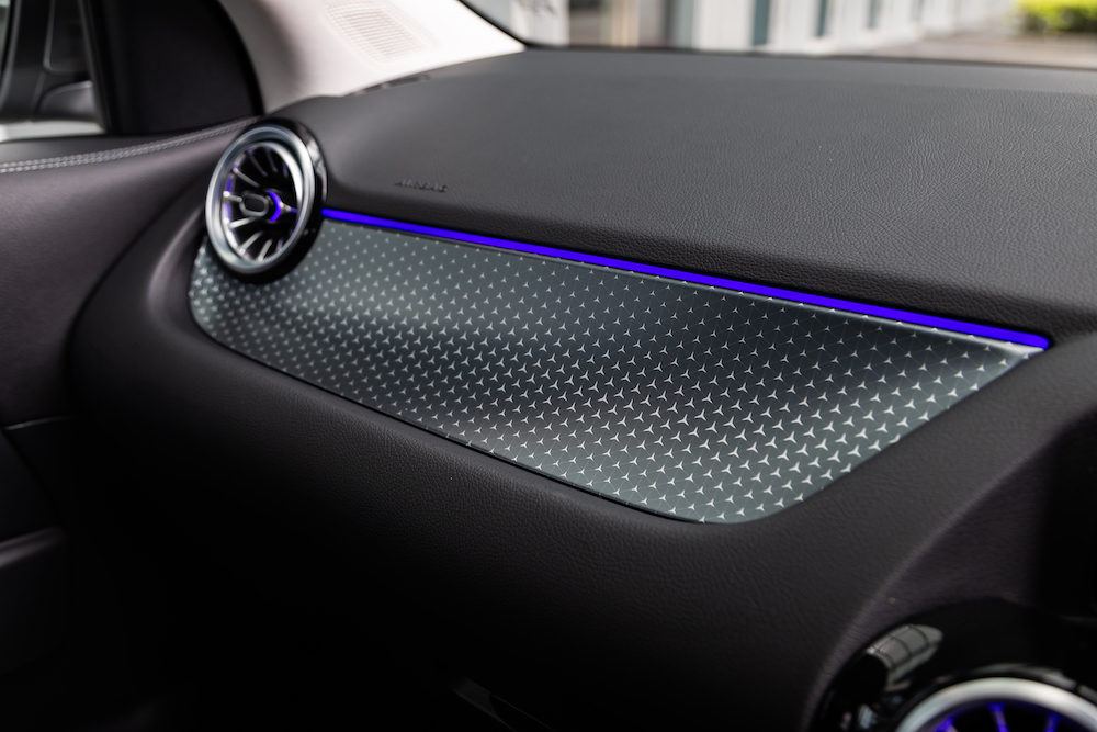 The new GLA is equipped with comfort seats and they are upholstered in ARTICO man-made leather in black. The Star Pattern trim elements within the cabin blends in harmoniously while also creating exciting contrasts. As such it reinforces and underscores the interior design. Variable folding options for the backrests make the GLA SUV a flexible means of transport for everyday use.